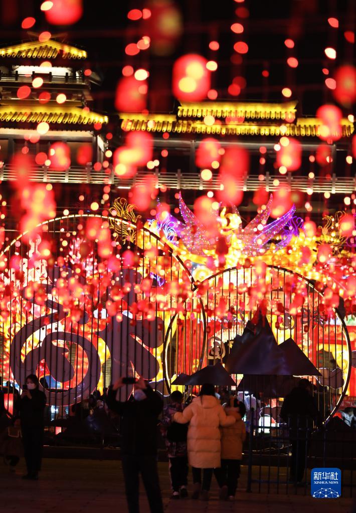 春節臨近,山東省臨沂市郯城縣大街小巷流光溢彩,洋溢著(zhù)濃濃的年味。