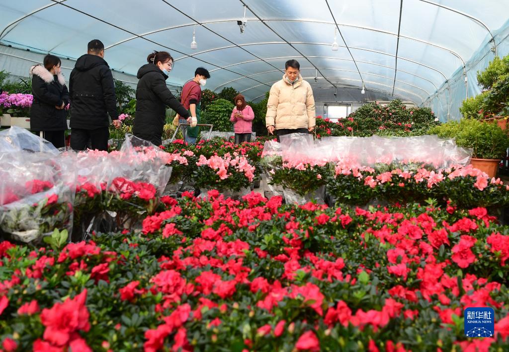 1月17日,市民們在安徽省合肥市肥西縣的中國中部花木城花卉市場(chǎng)選購花卉。