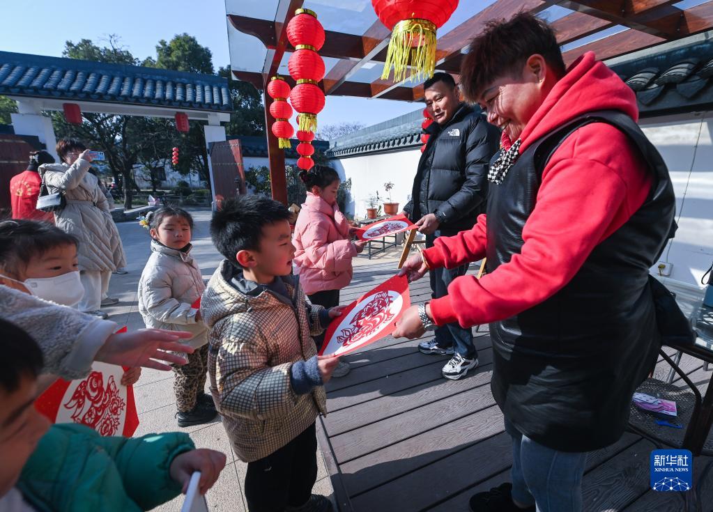 臨近春節,浙江省湖州市長(cháng)興縣李家巷鎮中心幼兒園的教師志愿者帶領(lǐng)孩子開(kāi)展以“巧手剪紙迎兔年”為主題的迎新年民俗活動(dòng)。孩子們在老師的指導下剪出各種福兔剪紙,并將福兔剪紙作品送到周邊村民手中,表達辭舊迎新的美好愿望。