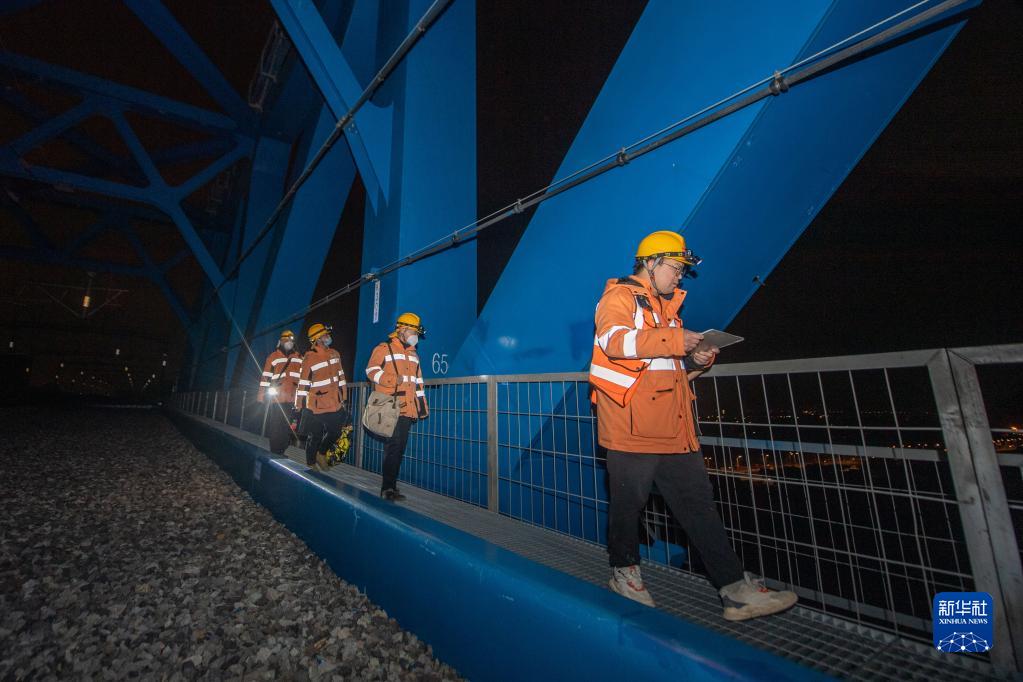 近日,浙江省迎來(lái)降溫天氣。鐵路寧波工務(wù)段椒江橋隧工區的工人們利用夜間高鐵線(xiàn)路的“天窗期”,頂著(zhù)冬夜的寒風(fēng)對杭臺高鐵椒江特大橋進(jìn)行全方位檢查,確保線(xiàn)路安全。