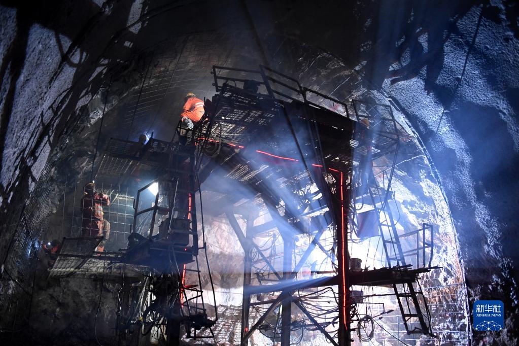 1月17日,中鐵二局建設者在海底隧道一處施工現場(chǎng)忙碌,該作業(yè)面距離海平面80米。