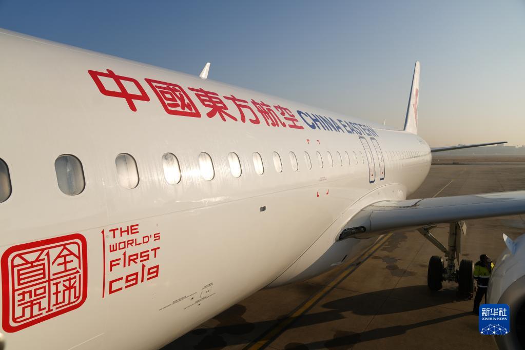 東航首架C919停在上海虹橋機場(chǎng)停機坪上(1月9日攝)。