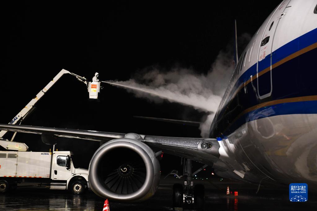 新華全媒+·新春走基層丨嚴寒下的航班守護者——走近深夜里的飛機“除冰師”