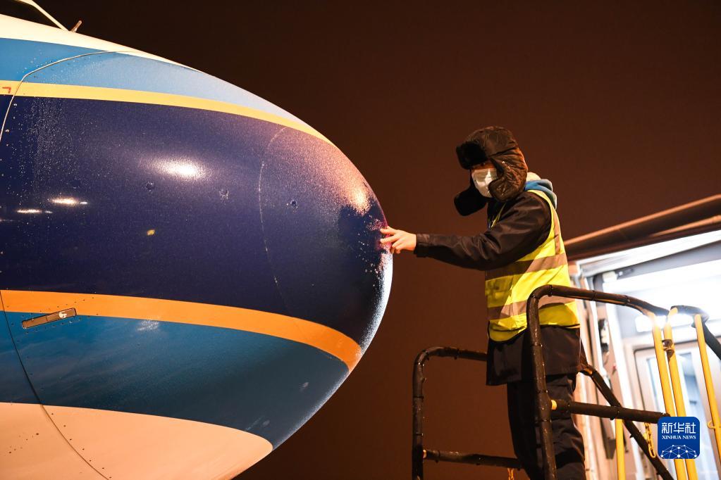 新華全媒+·新春走基層丨嚴寒下的航班守護者——走近深夜里的飛機“除冰師”