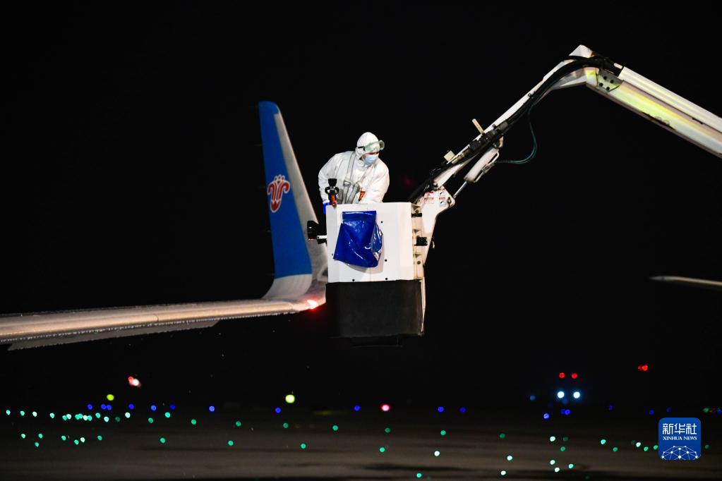 新華全媒+·新春走基層丨嚴寒下的航班守護者——走近深夜里的飛機“除冰師”
