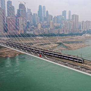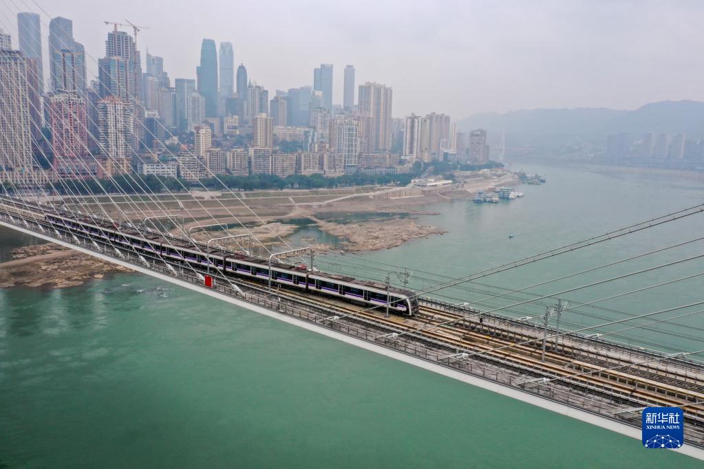 1月18日,重慶軌道交通10號線(xiàn)列車(chē)通過(guò)南紀門(mén)軌道大橋(無(wú)人機照片)。