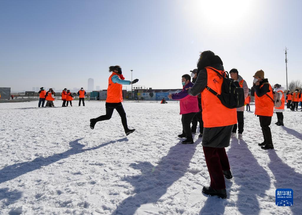1月18日,殘疾人在銀川市閱?;﹫?chǎng)參加雪地接力賽。