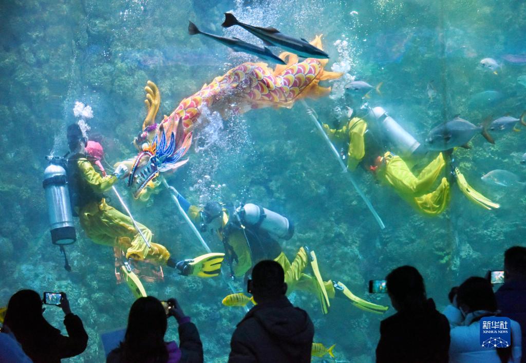 春節臨近,青島極地海洋公園在春節期間推出了“海底舞龍”和水下拜年等賀新春活動(dòng),迎接農歷新年的到來(lái)。