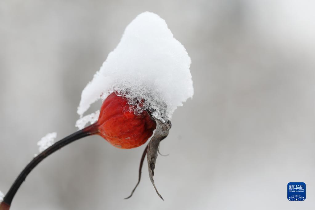 河南省焦作市溫縣,月季花果實(shí)與白雪相映成趣(1月15日攝)。