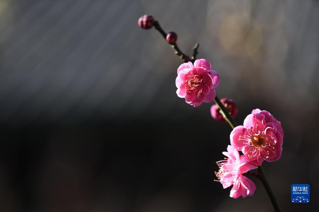 云南麗江古城黑龍潭公園,梅花綻放(1月14日攝)。