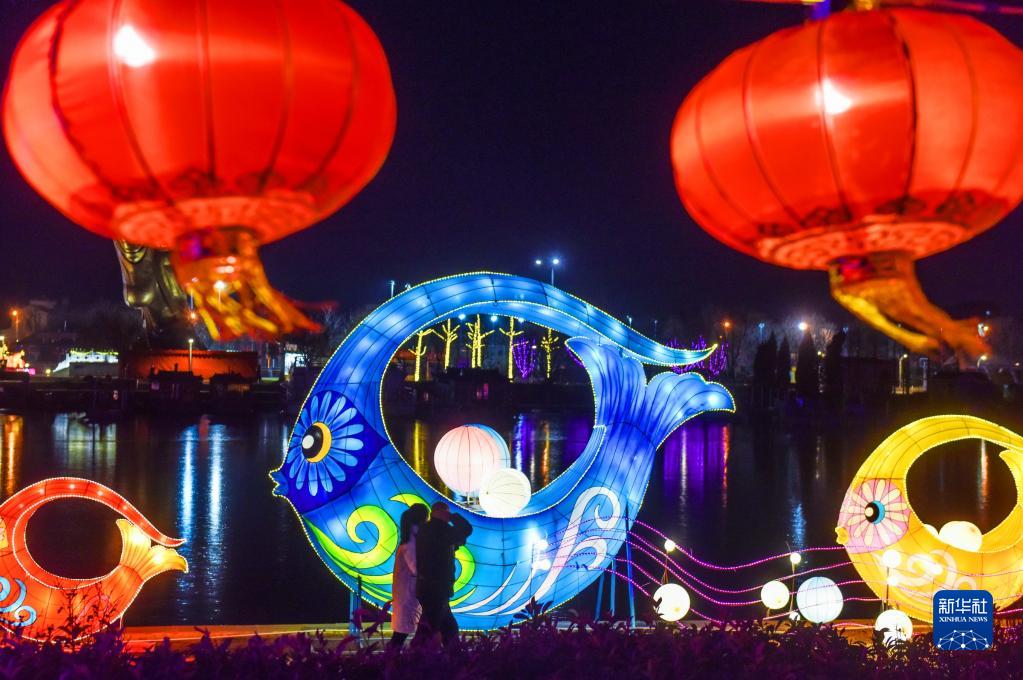 1月18日,游客在位于山東省青島市膠州市的青島大沽河省級生態(tài)旅游度假區觀(guān)賞彩燈。
