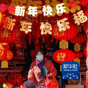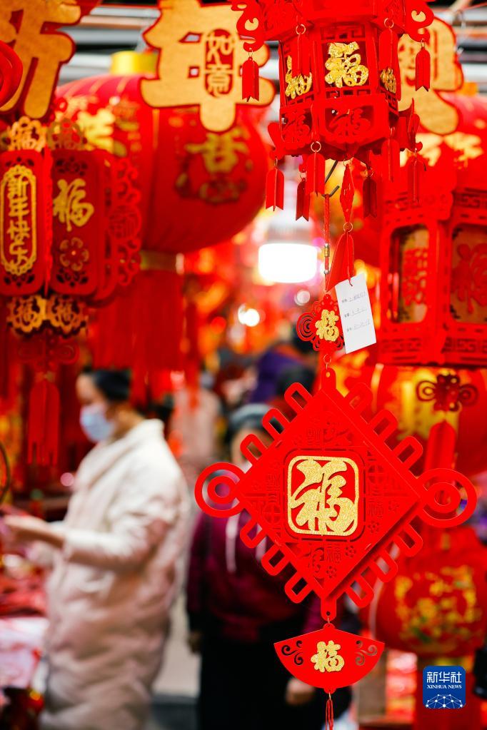 1月19日,人們在四川成都荷花池批發(fā)市場(chǎng)選購節慶用品。