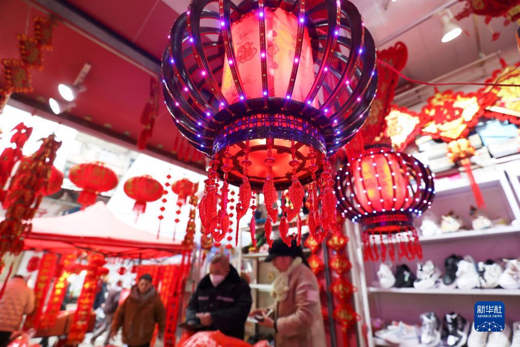 1月19日,市民在湖南省資興市一家年貨市場(chǎng)選購春節飾品。