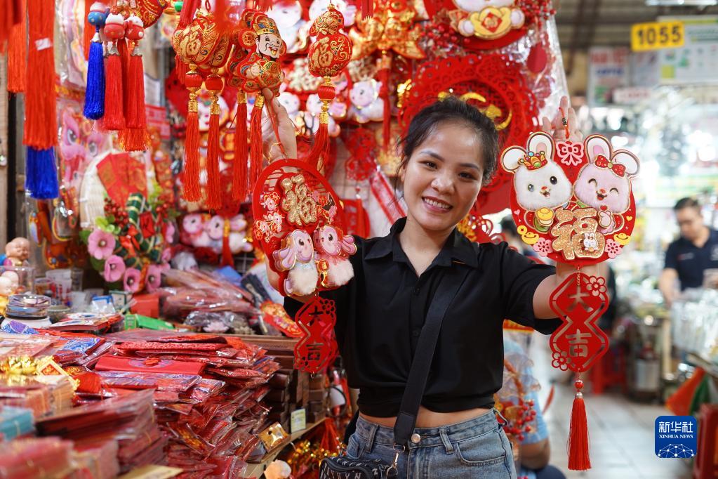 農歷新春臨近,位于越南南部的胡志明市年味漸濃。盡管癸卯年是越南貓年,這里也有著(zhù)“兔元素”的年貨和擺件。