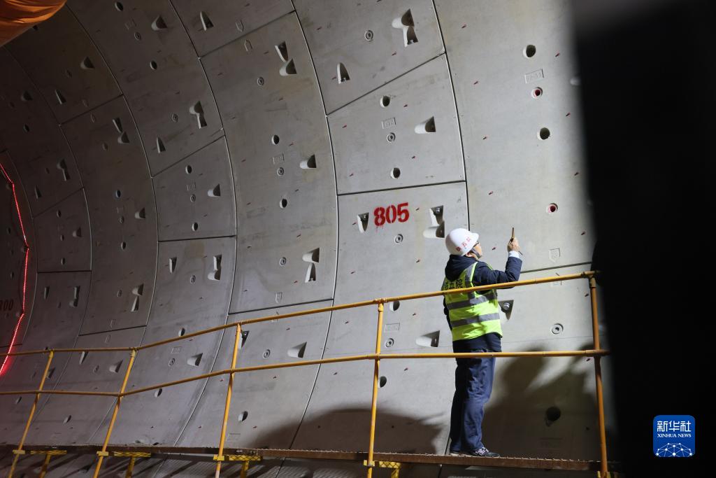 梅東冬在雄安新區至北京大興國際機場(chǎng)快線(xiàn)(R1線(xiàn))一標段項目地下隧道巡查(1月18日攝)。