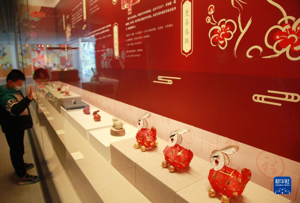 1月19日,觀(guān)眾在江蘇省南京市六朝博物館參觀(guān)“我們的節日·福兔迎春——癸卯年賀歲展”。
