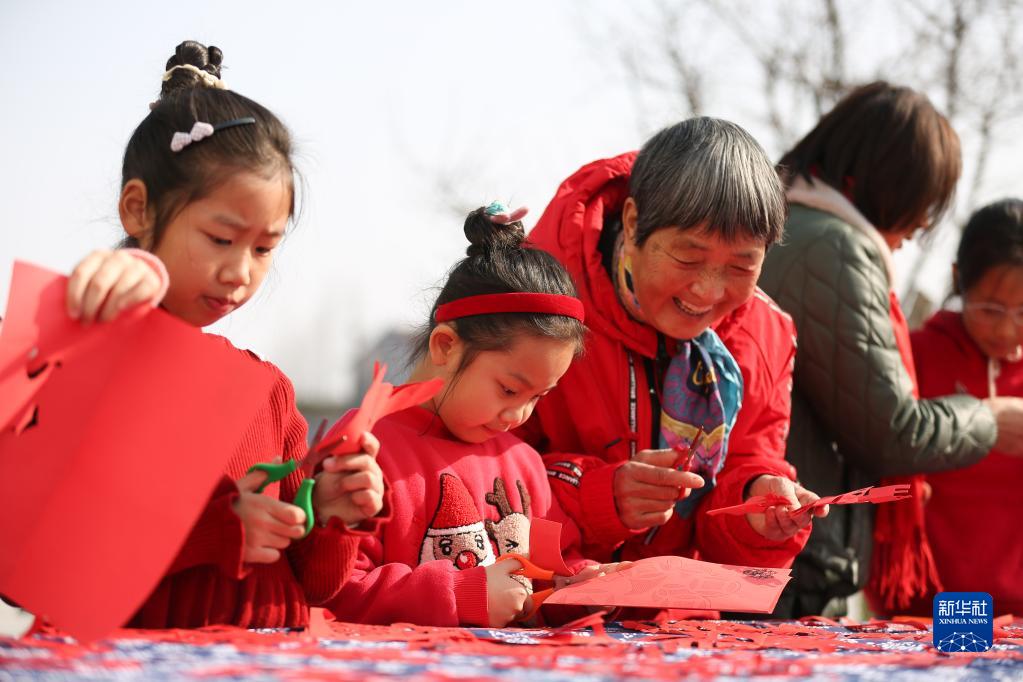 1月19日,在浙江省湖州市德清縣洛舍鎮三家村,孩子們學(xué)習制作生肖兔剪紙。
