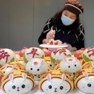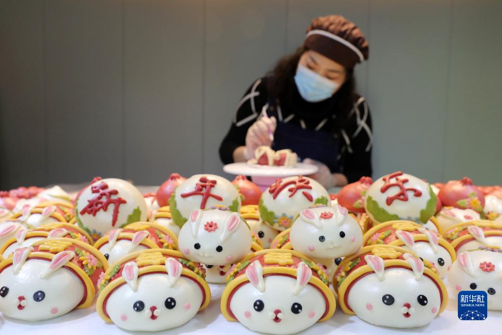 春節臨近,安徽省淮北市一些面點(diǎn)師以兔為主題,創(chuàng )作出各式各樣的“萌兔”花饃,供應節日市場(chǎng),迎接新春佳節的到來(lái)。