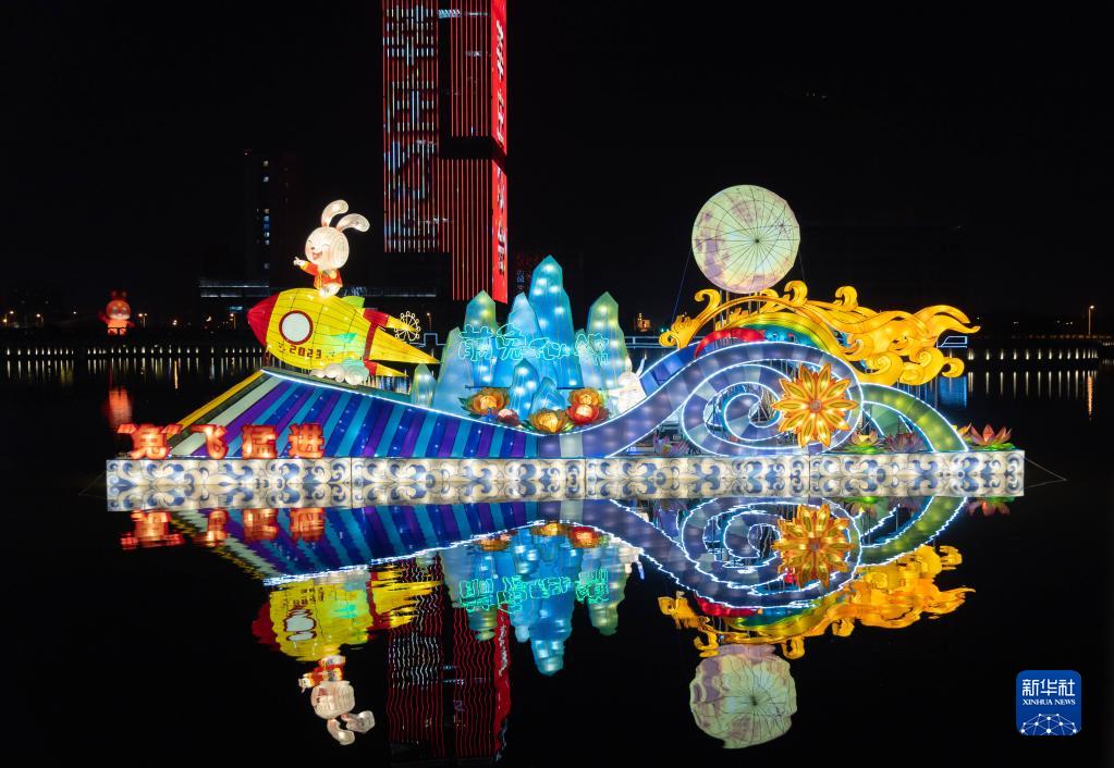 1月18日晚,2023癸卯兔年莘莊燈會(huì )在上海市閔行區莘莊鎮莘莊商務(wù)區正式啟幕。今年的莘莊燈會(huì )將從1月18日持續到2月6日,展出的大型燈組多數以兔子為設計原型,同時(shí)融入莘莊梅花、吉祥物“莘寶”等元素,眾多市民前來(lái)賞燈游玩,感受新年氛圍。