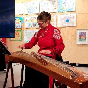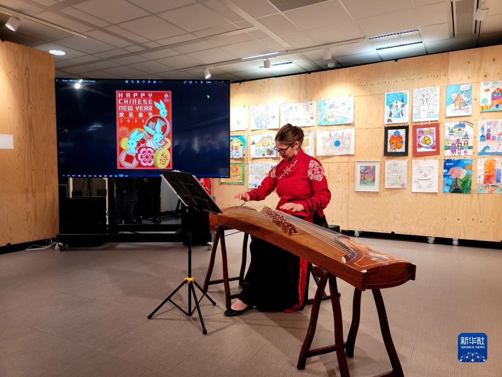 1月18日,在荷蘭海牙中國文化中心,表演者在彈奏古箏曲《梅花三弄》。