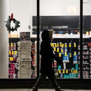 1月18日,在美國弗吉尼亞州阿靈頓,一名女子從一家零售商店旁經(jīng)過(guò)。