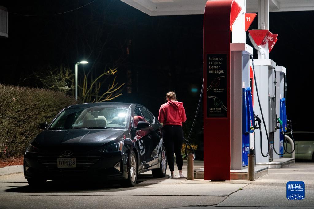 1月18日,在美國弗吉尼亞州阿靈頓,一名女子給汽車(chē)加油。