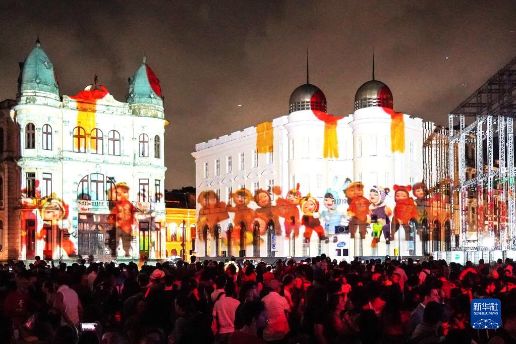 巴西東北部城市累西腓19日晚舉行中國春節慶?;顒?dòng),通過(guò)中巴歌舞、舞獅表演、燈光秀等精彩節目喜迎兔年新春。2022年,累西腓市通過(guò)法案,將中國春節設立為該市的官方節日。