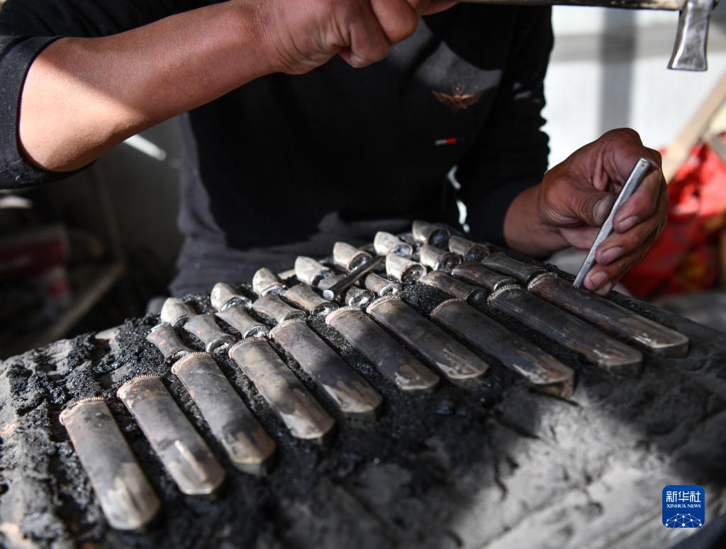 多吉占堆在雕刻拉孜藏刀上的花紋(1月19日攝)。