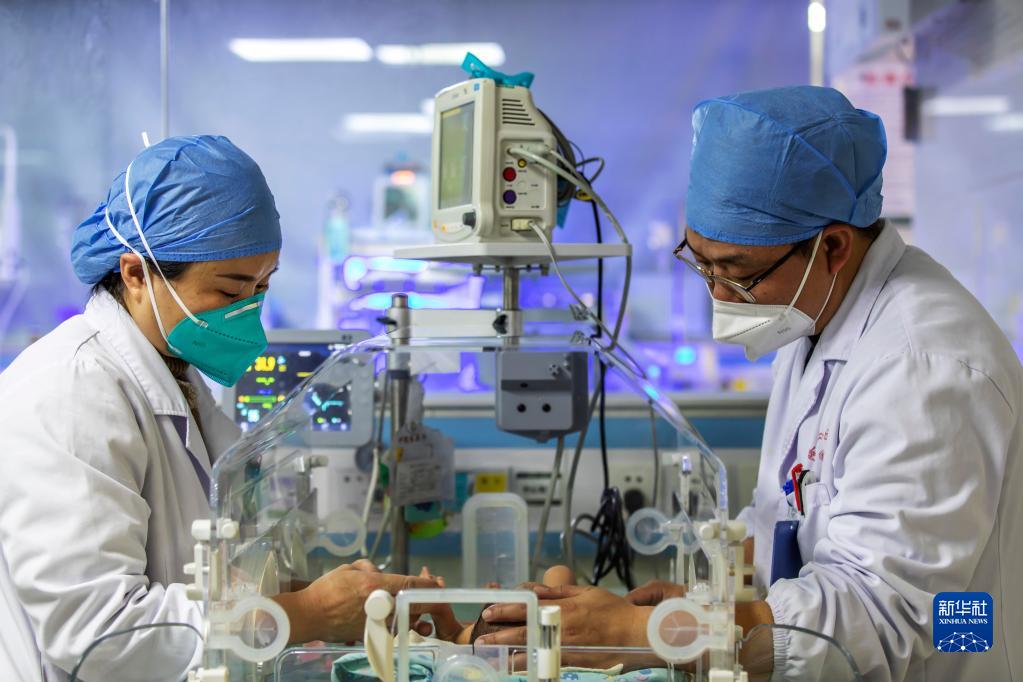 1月21日,醫生在湖南省隆回縣人民醫院新生兒科為新生兒進(jìn)行護理檢查。