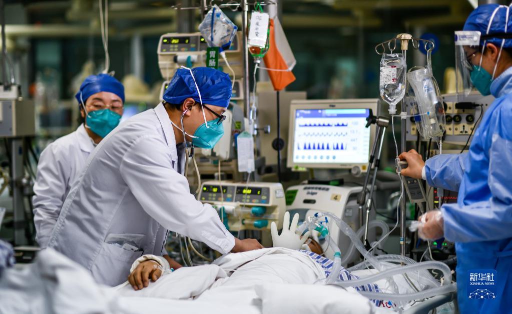 1月21日,云南省第一人民醫院重癥監護科醫生倪礦在病房為病人檢查。