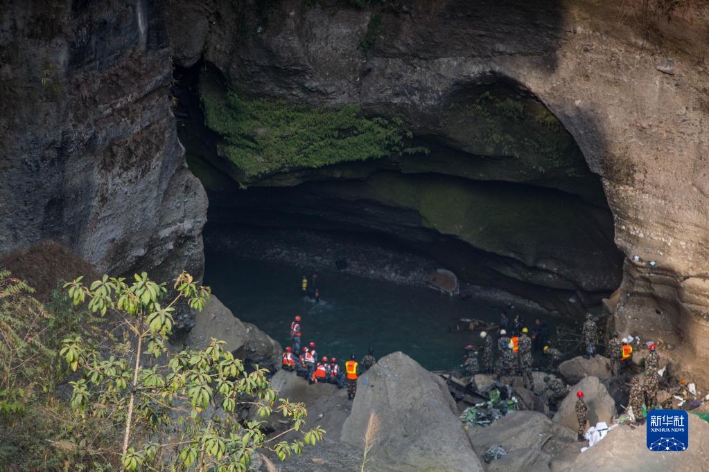 1月17日,救援人員在尼泊爾博克拉地區的墜機現場(chǎng)開(kāi)展搜救工作。