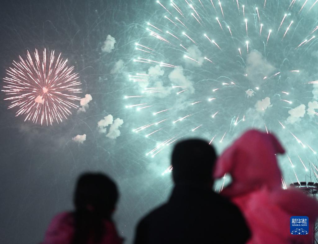 農歷除夕夜,陜西西安市民在觀(guān)看煙花表演中喜迎新年。