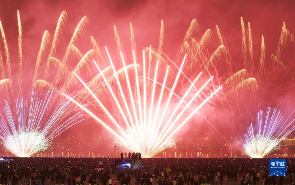 農歷除夕夜,陜西西安市民在觀(guān)看煙花表演中喜迎新年。