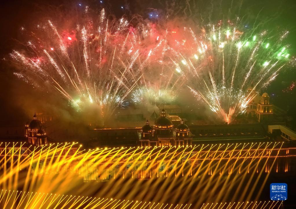 1月22日拍攝的“光影焰火歌舞嘉年華”活動(dòng)現場(chǎng)(無(wú)人機照片)。