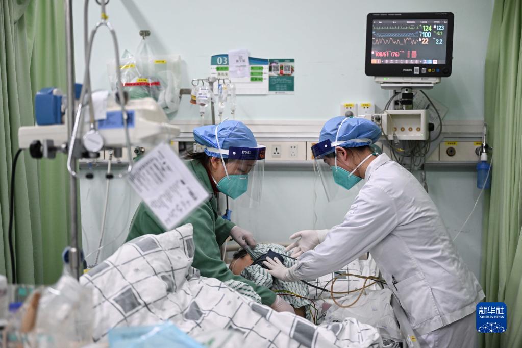 1月21日除夕夜,廣東省中醫院大德路總院急診重癥監護室的醫護人員查看患者身體情況。