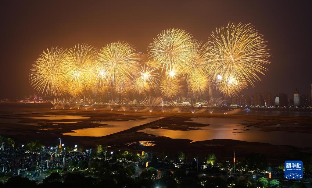 1月22日大年初一晚,2023年南昌市迎春煙花晚會(huì )在江西省南昌市贛江老官洲上演。絢爛繽紛的煙花在夜空中爭奇斗艷,為市民及游客送上新春祝福。