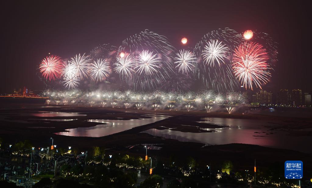 1月22日大年初一晚,2023年南昌市迎春煙花晚會(huì )在江西省南昌市贛江老官洲上演。絢爛繽紛的煙花在夜空中爭奇斗艷,為市民及游客送上新春祝福。