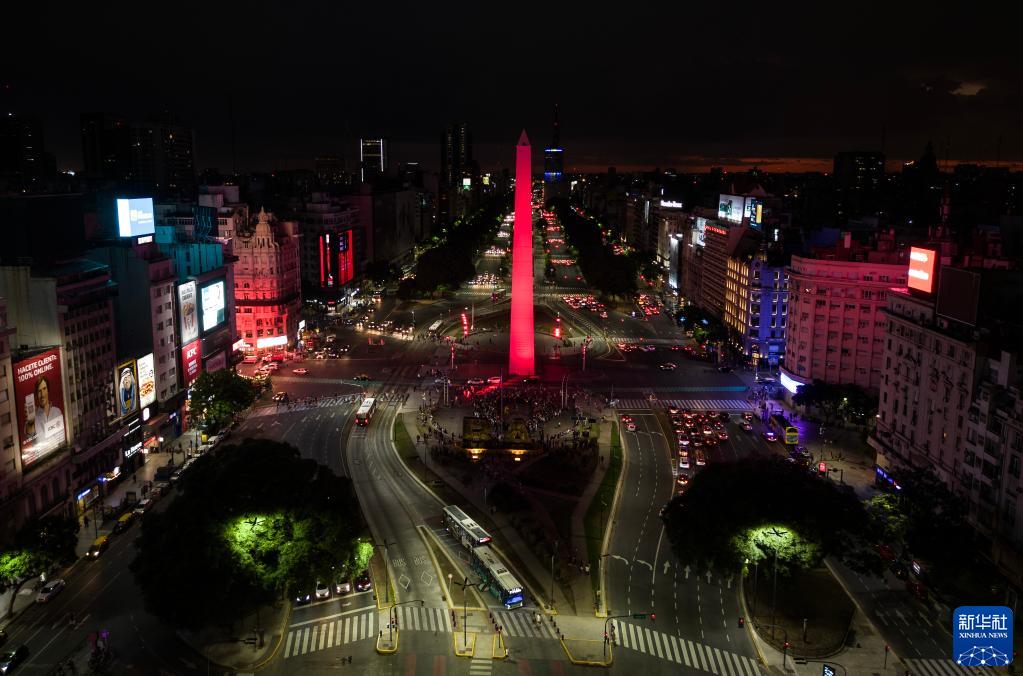 阿根廷首都地標建筑方尖碑點(diǎn)亮“中國紅”