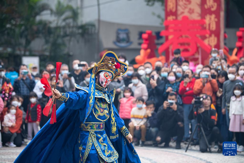 當日是大年初二,澳門(mén)旅游局在媽閣廟前安排了舞龍舞獅、變臉等賀歲活動(dòng),吸引大批市民及游客駐足觀(guān)賞。