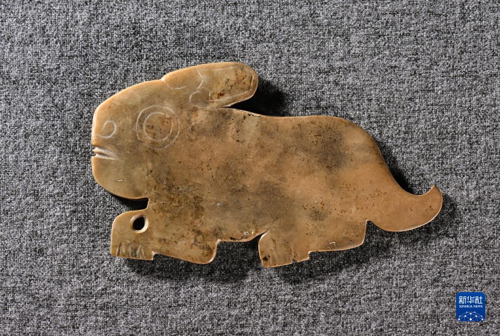 在中國歷史研究院考古博物館拍攝的玉兔(1月20日攝)。玉兔出土于有3000余年歷史的河南安陽(yáng)殷墟婦好墓。玉兔圓眼大睜、張口露舌、長(cháng)耳后伏、尾尖上翹,呆萌可愛(ài)。