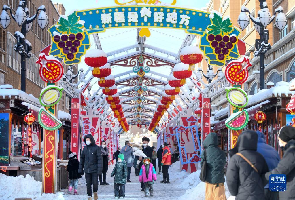 1月23日,市民和游客在烏魯木齊大巴扎景區觀(guān)光。
