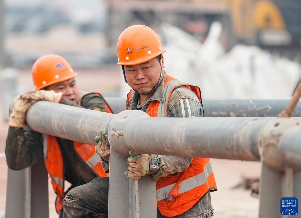 1月23日,在重慶兩江新區新能源汽車(chē)產(chǎn)業(yè)園基礎設施配套項目現場(chǎng),工人在進(jìn)行鋼結構材料拼裝作業(yè)。