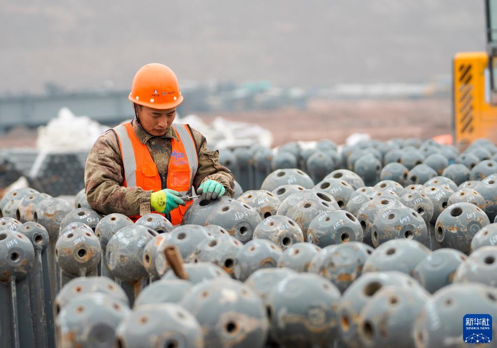 1月23日,在重慶兩江新區新能源汽車(chē)產(chǎn)業(yè)園基礎設施配套項目現場(chǎng),工人對即將使用的鋼結構材料進(jìn)行逐一檢查。