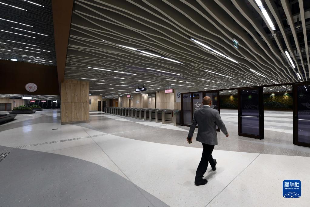 這是1月22日拍攝的土耳其伊斯坦布爾新機場(chǎng)線(xiàn)一車(chē)站內景。