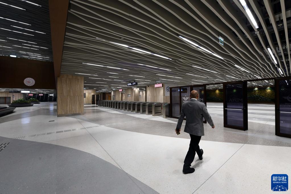 這是1月22日拍攝的土耳其伊斯坦布爾新機場(chǎng)線(xiàn)一車(chē)站內景。