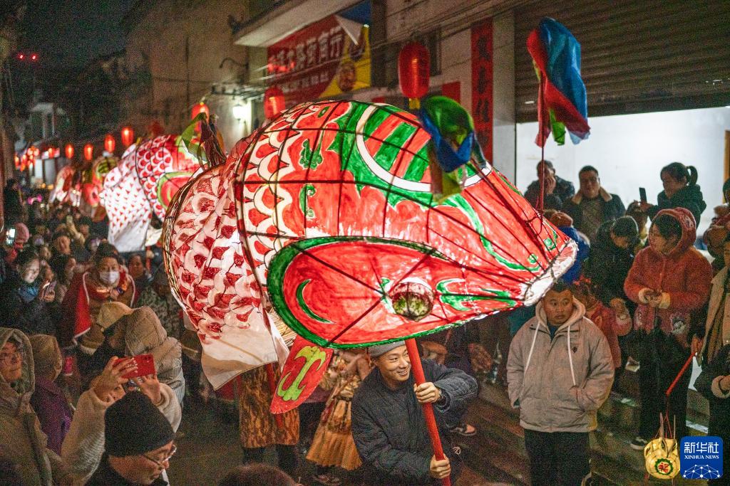 1月23日晚,在安徽歙縣北岸鎮瞻淇古村落,人們嬉魚(yú)燈慶新春,引來(lái)攝影愛(ài)好者和游人觀(guān)看。