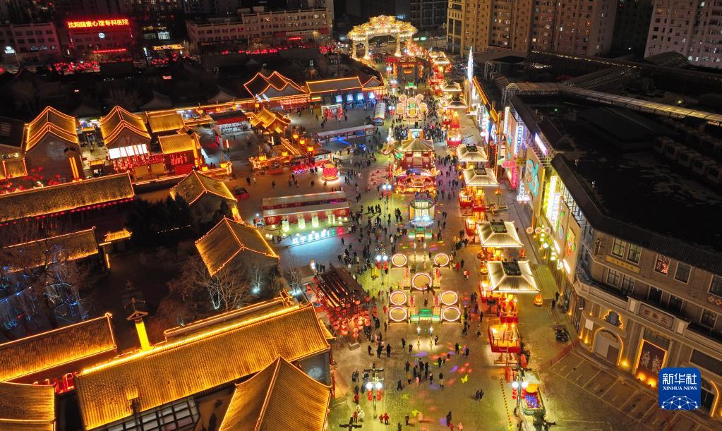 1月23日拍攝的沈陽(yáng)新春皇寺廟會(huì )(無(wú)人機照片)。