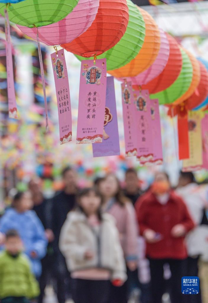 1月25日,人們在貴州銅仁市印江土家族苗族自治縣映美湖景區民俗活動(dòng)上猜燈謎。