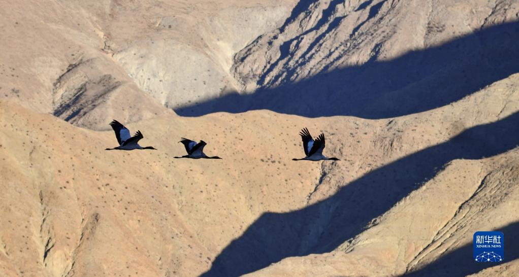 在西藏雅魯藏布江中游河谷黑頸鶴國家級自然保護區日喀則片區拉孜縣附近,大量越冬的黑頸鶴翩翩起舞,迎接春天的到來(lái)。