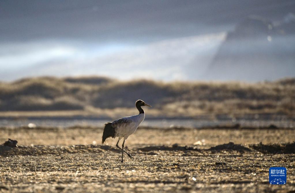 在西藏雅魯藏布江中游河谷黑頸鶴國家級自然保護區日喀則片區拉孜縣附近,大量越冬的黑頸鶴翩翩起舞,迎接春天的到來(lái)。